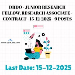 DRDO invites applications for 9 contractual posts of Junior Research Fellow and Research Associate in Delhi. Candidates must have relevant post graduate qualifications and meet…