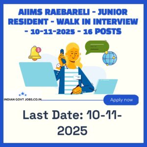 AIIMS Raebareli invites eligible candidates for a walk-in interview for 16 Junior Resident posts on a fixed-term contract basis. The interview is scheduled for 10-11-2025…