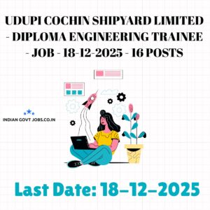 Udupi Cochin Shipyard Limited (UCSL) invites online applications for 16 Diploma Engineering Trainee posts in Mechanical and Electrical disciplines. Candidates must have a 3-year diploma…