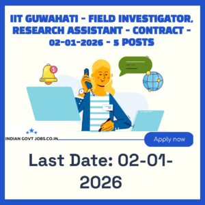 Indian Institute of Technology Guwahati (IIT Guwahati) invites applications for 5 contractual posts of Field Investigator and Research Assistant under a research project funded by…
