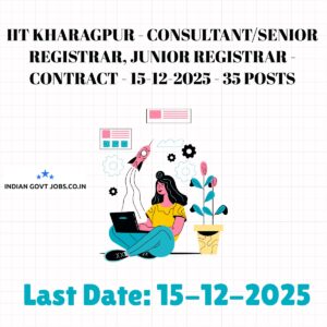 Indian Institute of Technology Kharagpur invites online applications for 35 contractual posts of Consultant/Senior Registrar and Junior Registrar. Candidates must apply by 15-12-2025. The recruitment…