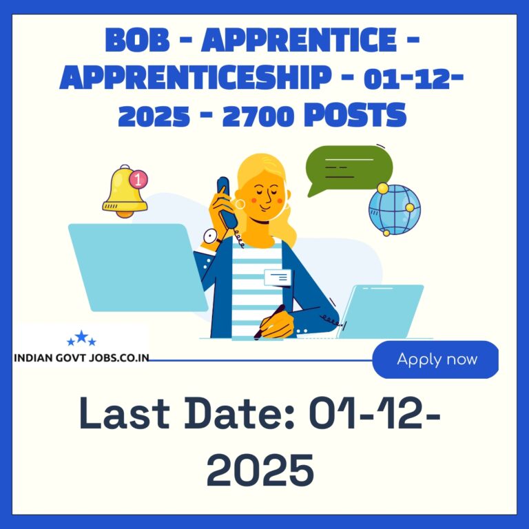 Bank of Baroda (BOB) invites online applications for 2700 contractual Apprenticeship posts. Candidates with graduation in any discipline, aged between 20 and 28 years as of 01-11-2025, can apply online by 01-12-2025. The selection process includes an online exam, document…