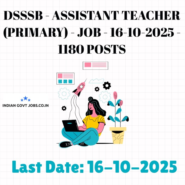 DSSSB – Assistant Teacher (Primary) – Job – 16-10-2025 – 1180 posts