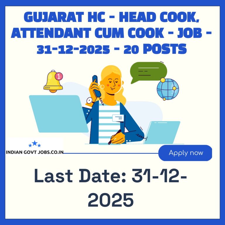 Gujarat HC – Head Cook, Attendant cum Cook – Job – 31-12-2025 – 20 posts