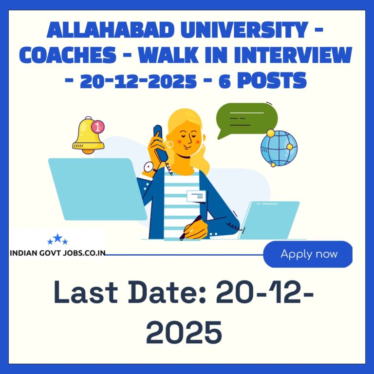 University of Allahabad invites eligible candidates for walk-in interviews for 6 contract-based Coaches posts. The interview is scheduled on 20-12-2025 at 11 AM. Candidates must bring a filled application form and relevant documents. The salary offered ranges from Rs 25000…