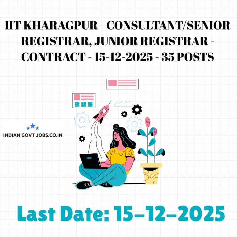 Indian Institute of Technology Kharagpur invites online applications for 35 contractual posts of Consultant/Senior Registrar and Junior Registrar. Candidates must apply by 15-12-2025. The recruitment is on a contract basis for West Bengal location. Minimum qualifications include MBBS with MD/DNB…
