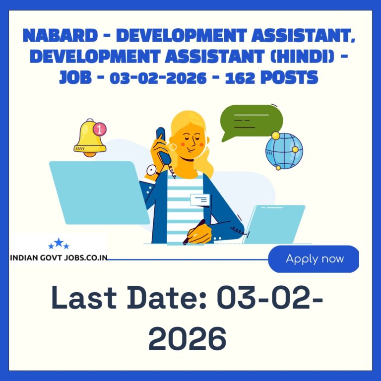 NABARD invites online applications for 162 permanent Development Assistant posts including Hindi medium. The last date to apply is 03-02-2026. Candidates must have a bachelor’s degree with specified qualifications and age between 21 to 35 years. The selection involves online…