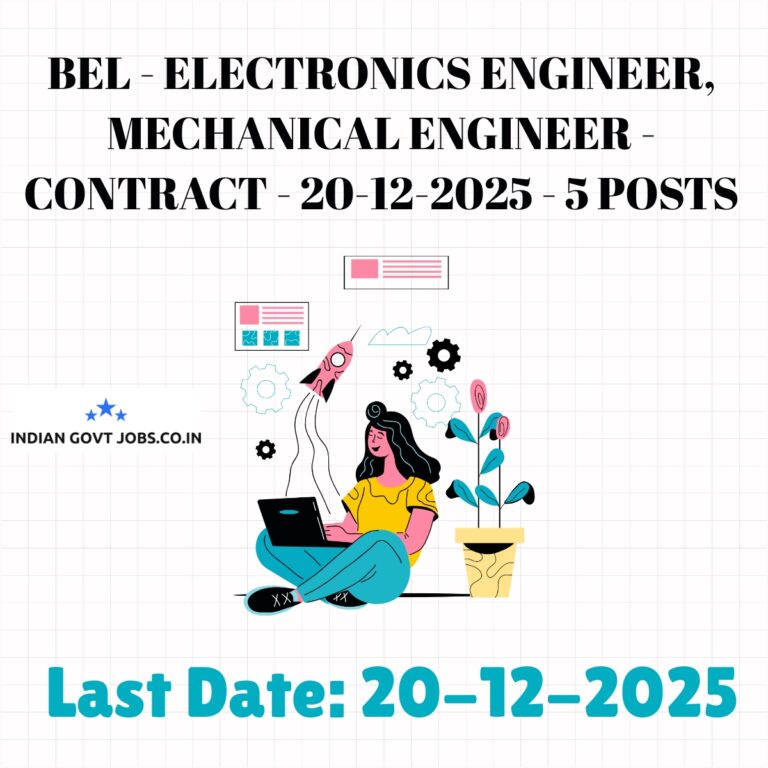 Bharat Electronics Limited (BEL) invites applications for 5 contract-based positions of Electronics Engineer and Mechanical Engineer at BEL Optronic Devices Limited, Maharashtra. Candidates must have BE in relevant engineering fields and be under 30 years of age as of 01-11-2025.…