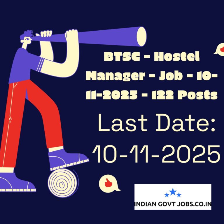 BTSC – Hostel Manager – Job – 10-11-2025 – 122 posts