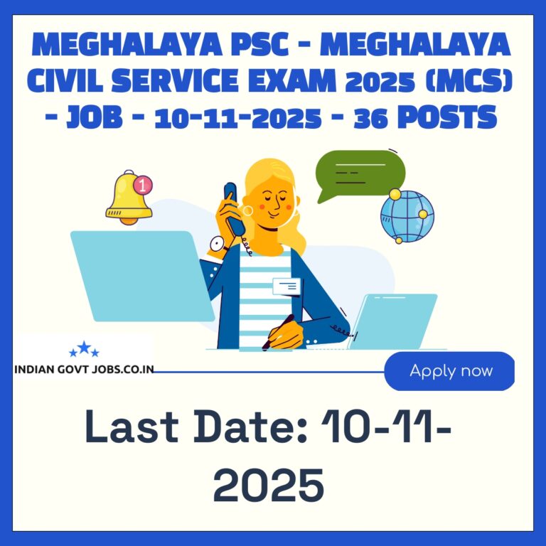 Meghalaya PSC – Meghalaya Civil Service Exam 2025 (MCS) – Job – 10-11-2025 – 36 posts