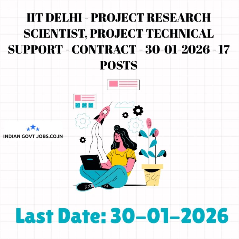 Indian Institute of Technology Delhi (IIT Delhi) invites applications for 17 contract-based posts of Project Research Scientist and Project Technical Support under the SANJEEVANI research project. Candidates with relevant postgraduate qualifications and experience can apply by 30-01-2026. Selection is through…