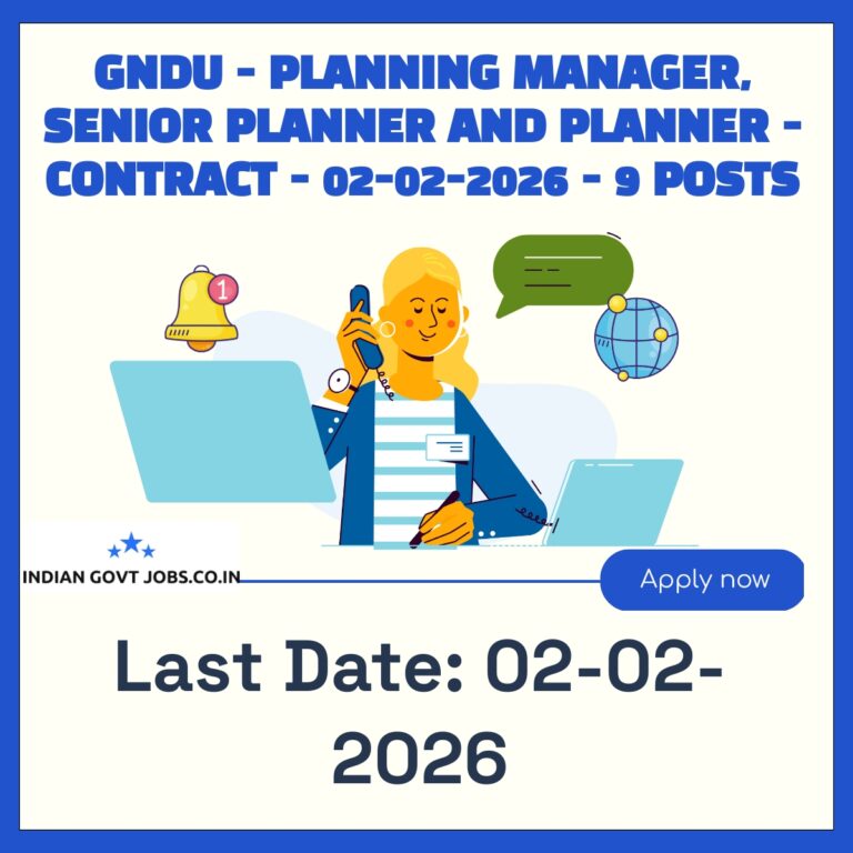 GNDU – Planning Manager, Senior Planner and Planner – Contract – 02-02-2026 – 9 posts