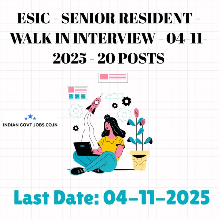ESIC – Senior Resident – Walk in Interview – 04-11-2025 – 20 posts