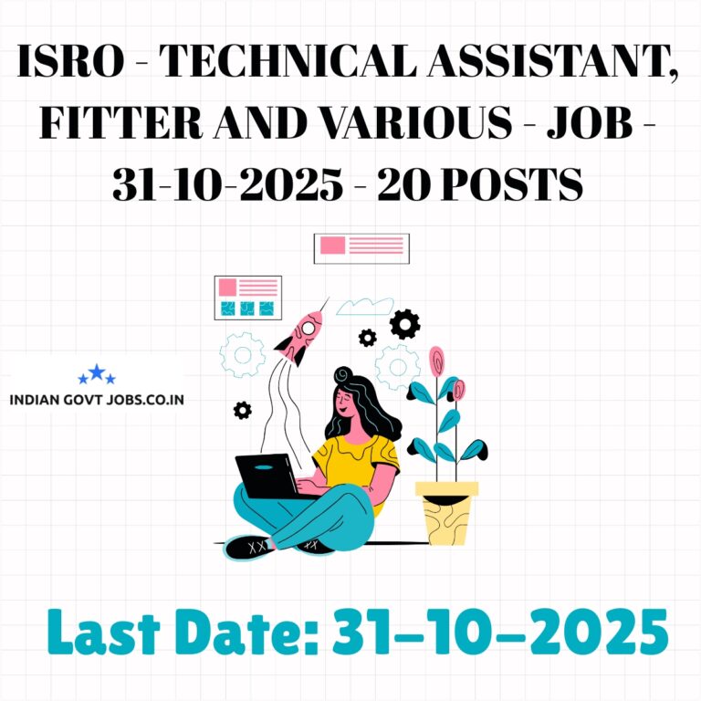 ISRO – Technical Assistant, Fitter and Various – Job – 31-10-2025 – 20 posts