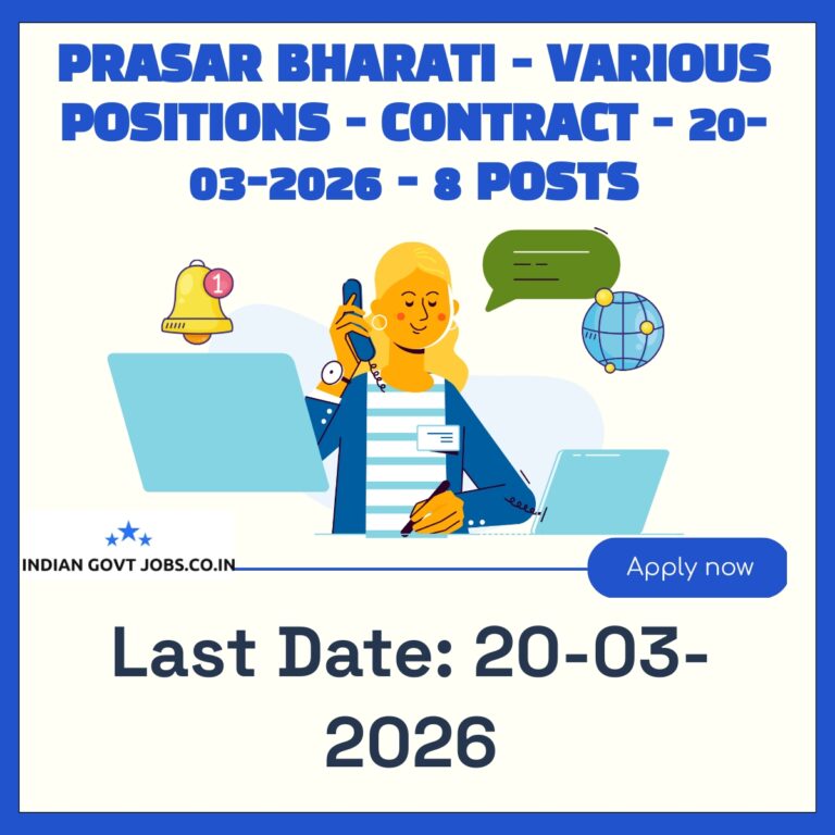 Prasar Bharati – Various Positions – Contract – 20-03-2026 – 8 posts