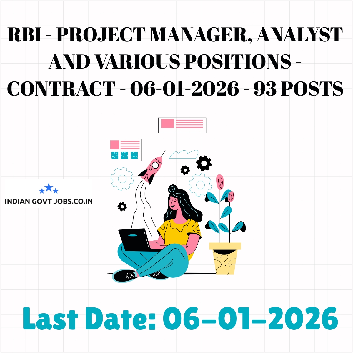 Reserve Bank of India (RBI) invites online applications for 93 contractual posts including Project Manager, Analyst, and various specialist roles. The recruitment is for experienced professionals on a full-time contract basis in Maharashtra. Candidates must meet specific educational qualifications and experience requirements. The age limit ranges from 21 to 62 years depending on the post. The pay scale varies from Level 3 to Level 5 with salaries between ₹3.10 L to ₹6.00 L. Application fee is Rs 100 + GST for SC/ST/PwBD and Rs 600 + GST for others, payable online. Selection involves application review and interviews. Apply online before 06-01-2026.