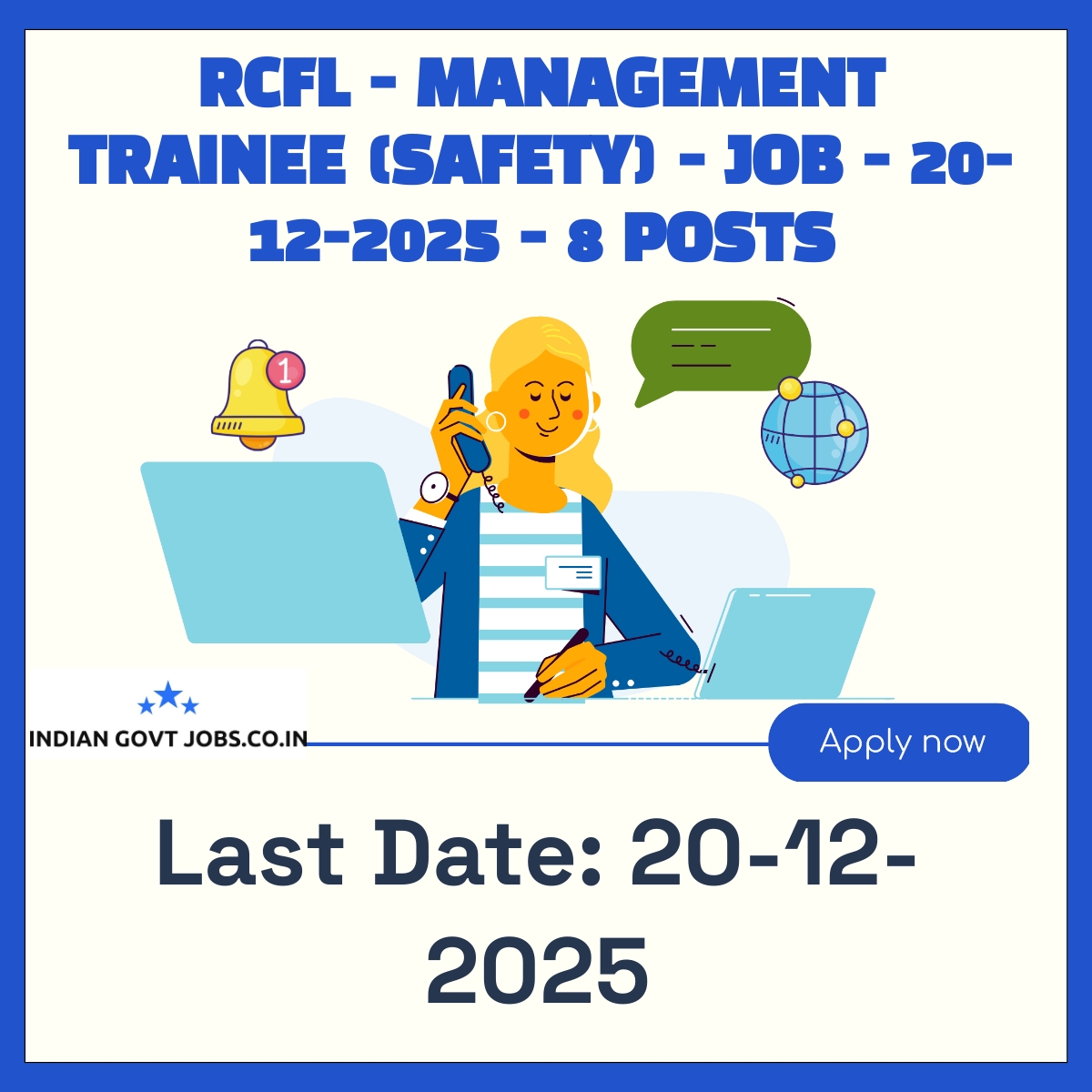 Rashtriya Chemicals and Fertilizers Limited (RCFL) invites online applications for 8 permanent Management Trainee (Safety) posts. Candidates must have a relevant engineering degree in Chemical or Fire & Safety disciplines. The maximum age limit is 27 years as of 01-08-2025. The selection process includes an online test and a personal interview. The pay scale ranges from Rs. 40,000 to Rs. 1,40,000. Applications must be submitted online by 20-12-2025. SC/ST/ExSM/Female candidates are exempt from the application fee, while others must pay Rs. 1000 online.