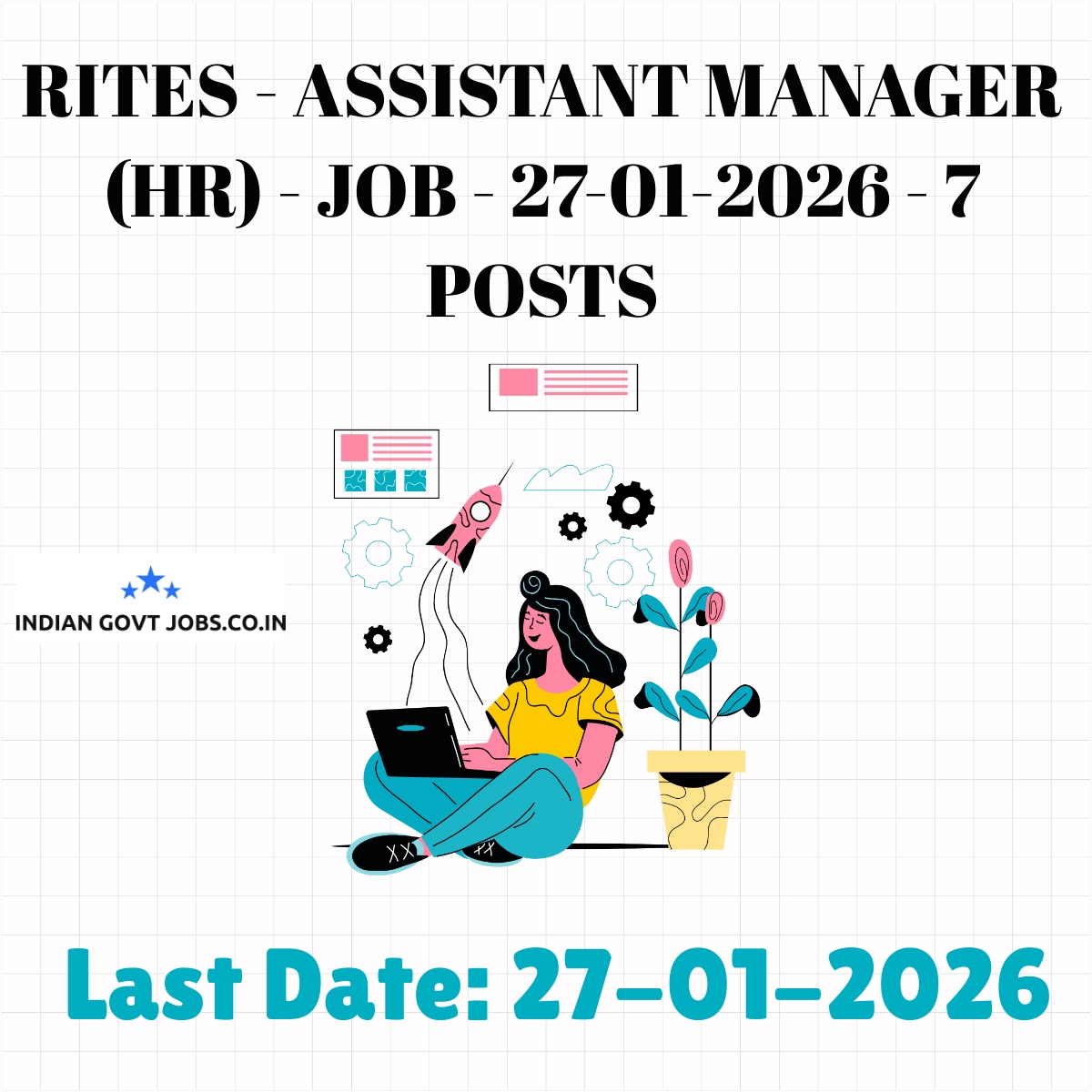 Rites Limited invites online applications for 7 permanent Assistant Manager (HR) posts in Haryana. Candidates must have MBA or equivalent postgraduate diploma in HR-related fields with minimum 2 years experience and be under 32 years. Selection involves a written test, document verification, and interview. Application fee is Rs. 600, reduced to Rs. 300 for EWS, SC, ST, and PwD categories. Apply online by 27-01-2026.