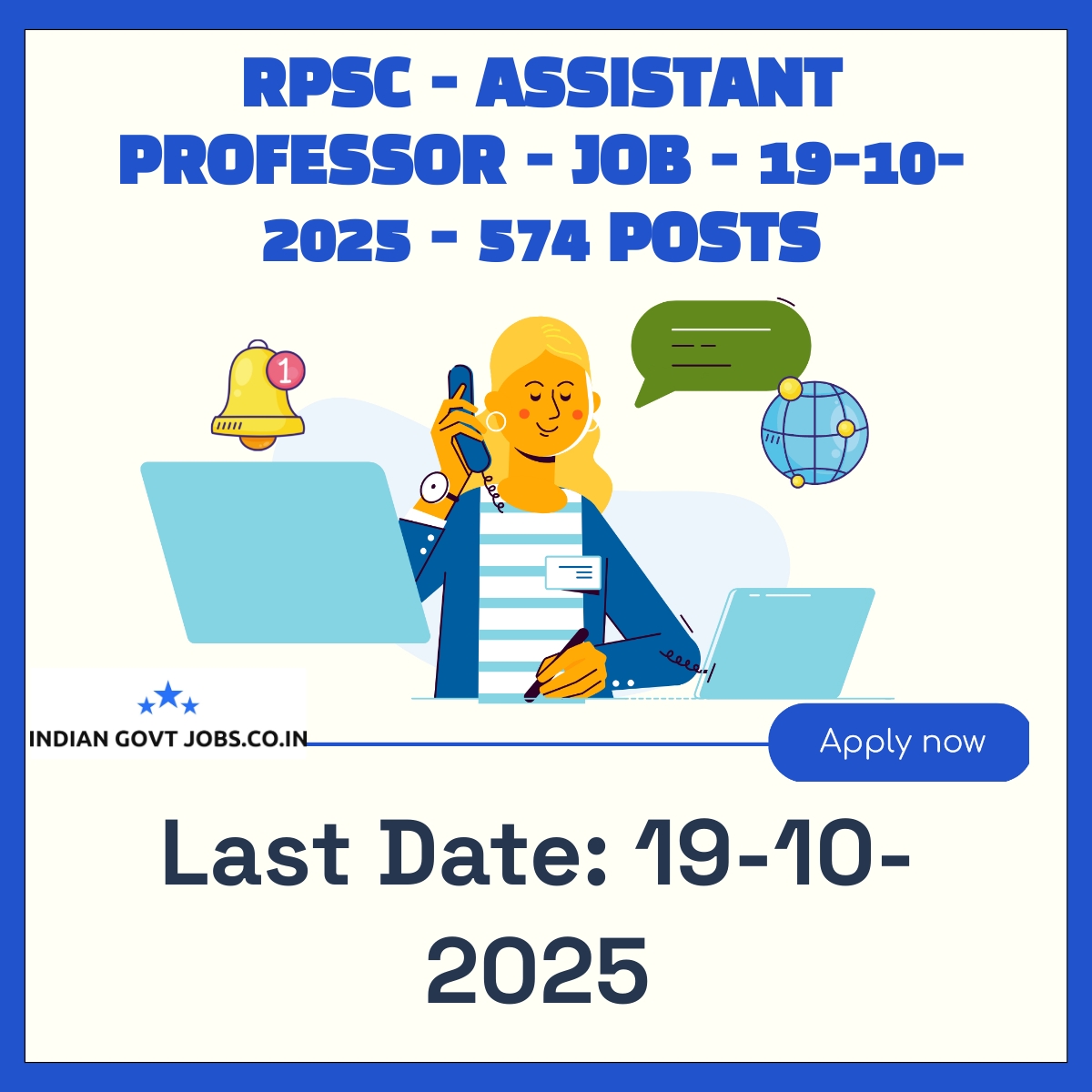 Rajasthan Public Service Commission (RPSC) invites online applications for 574 permanent Assistant Professor posts in Rajasthan. Candidates must have a Master’s degree with 55% marks and NET/SLET/SET qualification. Age limit is 21-40 years as of 01-07-2025. Selection involves a written exam and interview. Application fee varies by category and must be paid online. Apply before 19-10-2025.