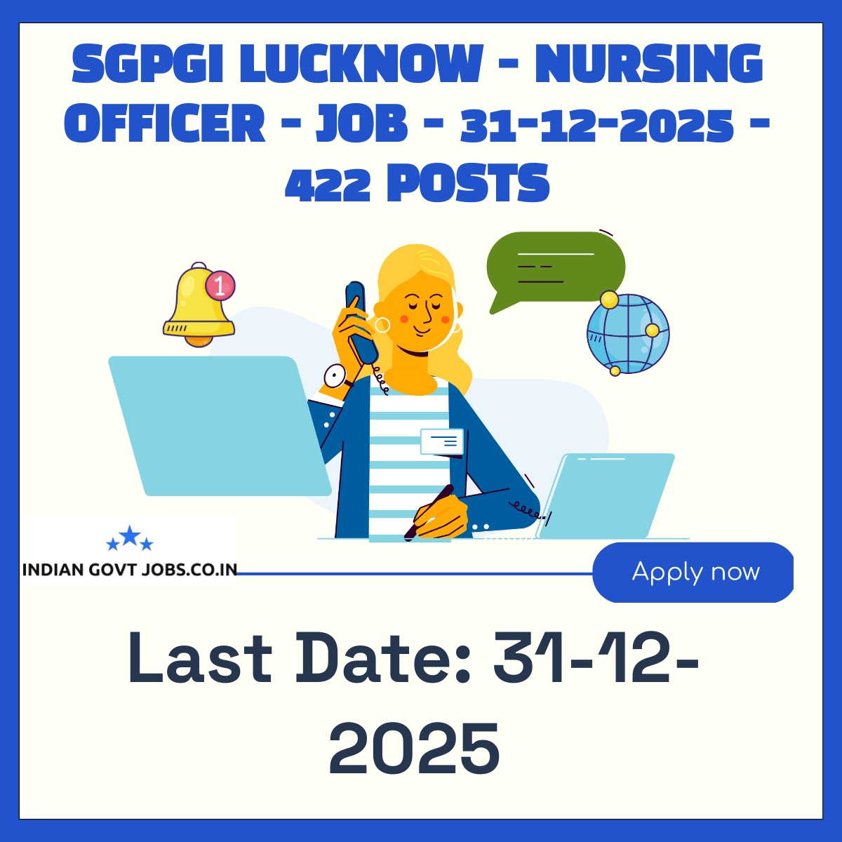 SGPGI Lucknow invites online applications for 422 Nursing Officer posts. Candidates with B.Sc Nursing or Diploma in General Nursing Midwifery (GNM) and required registration can apply. Age limit is 18-40 years with relaxations as per UP Government rules. The recruitment involves two online exams: Screening and Mains. Application fee varies by category and must be paid online. Applications open in November 2025 and close on 31-12-2025.
