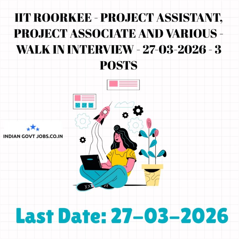 IIT Roorkee – Project Assistant, Project Associate and Various – Walk in Interview – 27-03-2026 – 3 posts